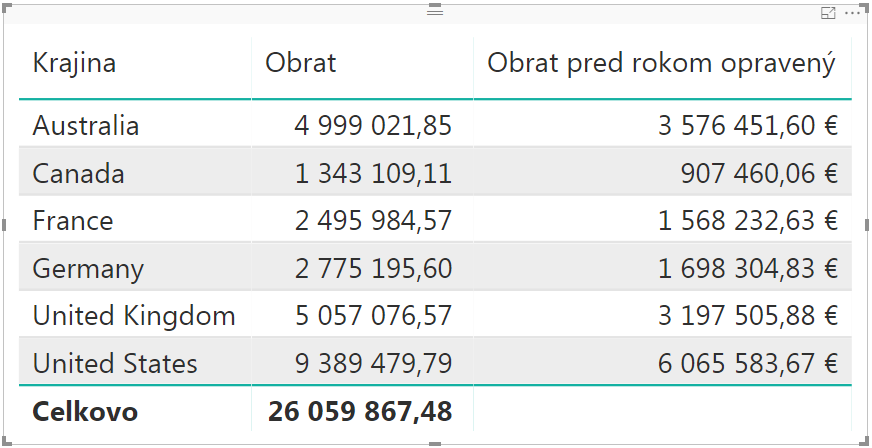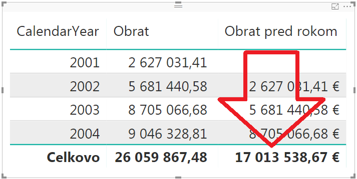 A po dosadení do reportu namiesto pôvodného merítka Obrat pred rokom, to bude vyzerať takto: