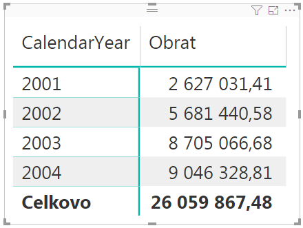 - do oblasti riadkov dáme stĺpce CalendarYear z tabuľky Čas.