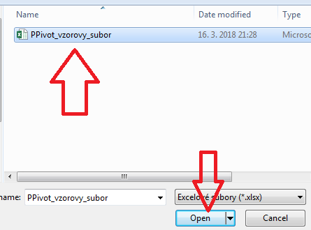Otvorí sa okno, v ktorom vyberte a potvrďte svoj excelovský súbor s PowerPivotom. My vyberieme náš vzorový súbor PowerPivotu: