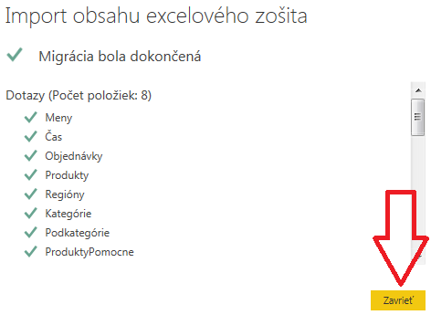 Ak bol import úspešný, čo vo väčšine prípadov je, tak sa zobrazí takéto okno: