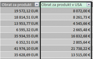 Keď si porovnáme hodnoty pôvodného a nového stĺpca, tak ten nový stĺpec bude mať o niečo nižšie hodnoty, ktoré budú rovnaké, ako keby ste si zobrazili v kontingečke obraty za produkty odfiltrované len na USA: